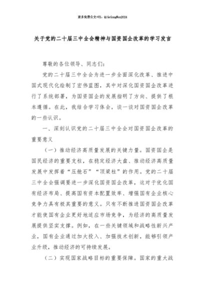 【七哥公文】2024年:关于党的二十届三中全会精神与国资国企改革的学习发言+更多免费公文+VX:QiGeGongWen2024