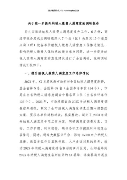 / 【七哥公文】2024年:关于进一步提升纳税人缴费人满意度的调研报告+更多免费公文+VX:QiGeGongWen2024