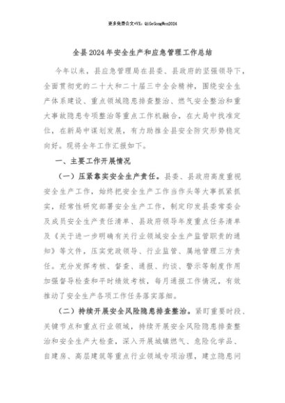 / 【七哥公文】2024年:全县2024年安全生产和应急管理工作总结+更多免费公文+VX:QiGeGongWen2024