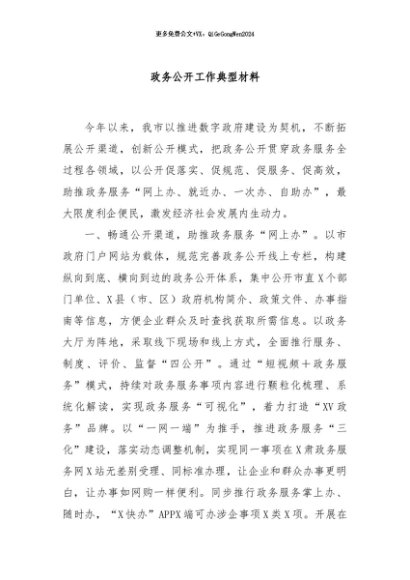 / 【七哥公文】2024年:政务公开工作典型材料+更多免费公文+VX:QiGeGongWen2024