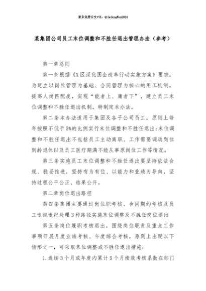 【七哥公文】2024年:某集团公司员工末位调整和不胜任退出管理办法(参考)+更多免费公文+VX:QiGeGongWen2024