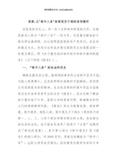 / 【七哥公文】2024年:党课从狱中八条体悟党员干部的信仰情怀+更多免费公文+VX:QiGeGongWen2024