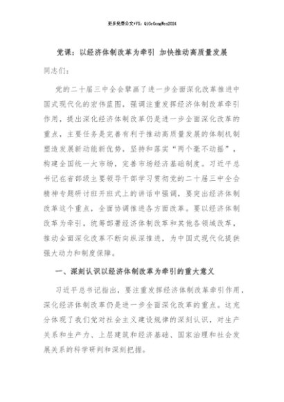 / 【七哥公文】2024年:党课:以经济体制改革为牵引 加快推动高质量发展+更多免费公文+VX:QiGeGongWen2024