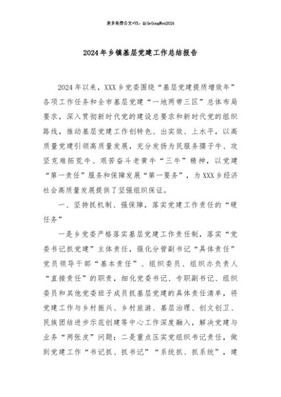 / 【七哥公文】2024年:2024年乡镇基层党建工作总结报告+更多免费公文+VX:QiGeGongWen2024
