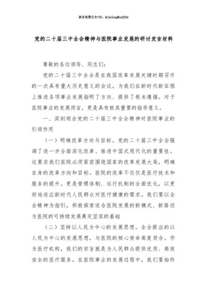【七哥公文】2024年:党的二十届三中全会精神与医院事业发展的研讨发言材料+更多免费公文+VX:QiGeGongWen2024