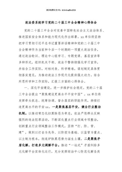 / 【七哥公文】2024年:政法委系统学习党的二十届三中全会精神心得体会+更多免费公文+VX:QiGeGongWen2024