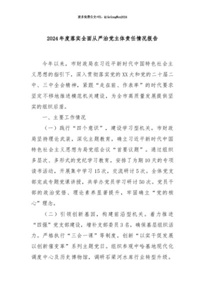/ 【七哥公文】2024年:2024年度落实全面从严治党主体责任情况报告+更多免费公文+VX:QiGeGongWen2024
