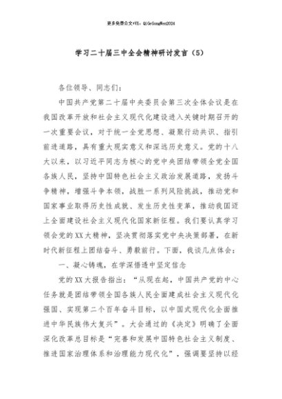 / 【七哥公文】2024年:学习二十届三中全会精神研讨发言(5)+更多免费公文+VX:QiGeGongWen2024