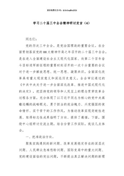 / 【七哥公文】2024年:学习二十届三中全会精神研讨发言(4)+更多免费公文+VX:QiGeGongWen2024