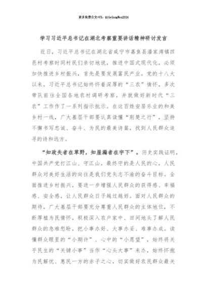 / 【七哥公文】2024年:学习习近平总书记在湖北考察重要讲话精神研讨发言+更多免费公文+VX:QiGeGongWen2024