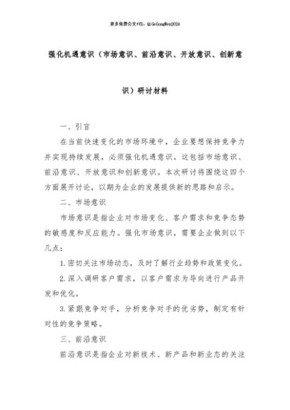【七哥公文】2024年:强化机遇意识(市场意识、前沿意识、开放意识、创新意识)研讨材料+更多免费公文+VX:QiGeGongWen2024