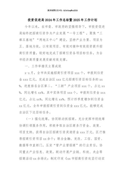 / 【七哥公文】2024年:投资促进局2024年工作总结暨2025年工作计划+更多免费公文+VX:QiGeGongWen2024