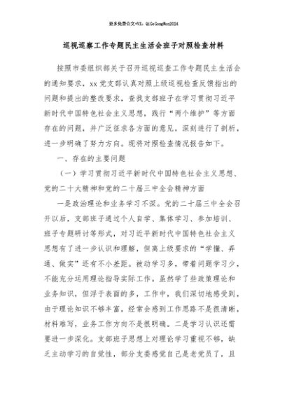 / 【七哥公文】2024年:巡视巡察工作专题民主生活会班子对照检查材料+更多免费公文+VX:QiGeGongWen2024