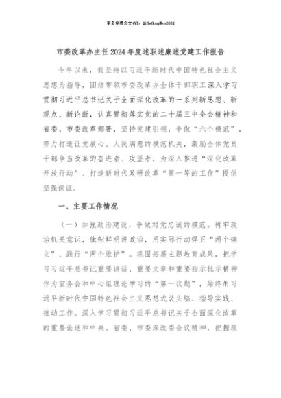 / 【七哥公文】2024年:市委改革办主任2024年度述职述廉述党建工作报告+更多免费公文+VX:QiGeGongWen2024