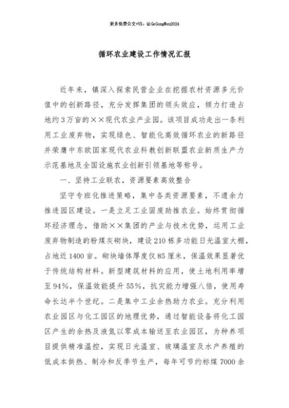 / 【七哥公文】2024年:循环农业建设工作情况汇报+更多免费公文+VX:QiGeGongWen2024