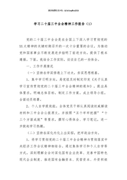 / 【七哥公文】2024年:学习二十届三中全会精神工作报告(1)+更多免费公文+VX:QiGeGongWen2024