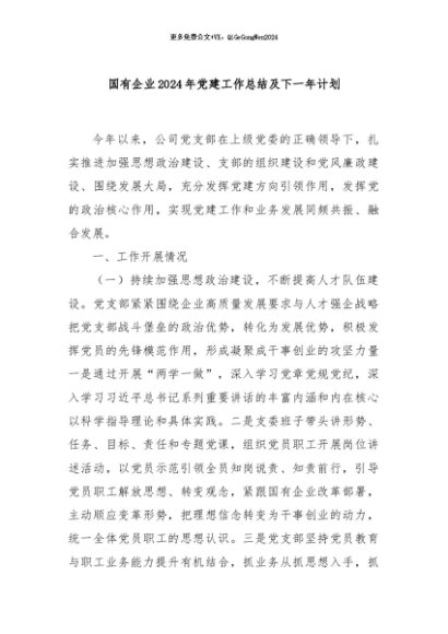 / 【七哥公文】2024年:国有企业2024年党建工作总结及下一年计划+更多免费公文+VX:QiGeGongWen2024