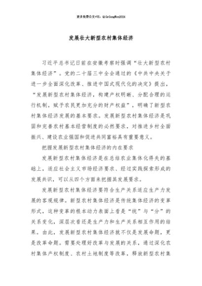 【七哥公文】2024年:发展壮大新型农村集体经济+更多免费公文+VX:QiGeGongWen2024