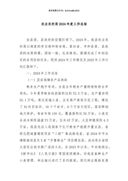 / 【七哥公文】2024年:农业农村局2024年度工作总结+更多免费公文+VX:QiGeGongWen2024