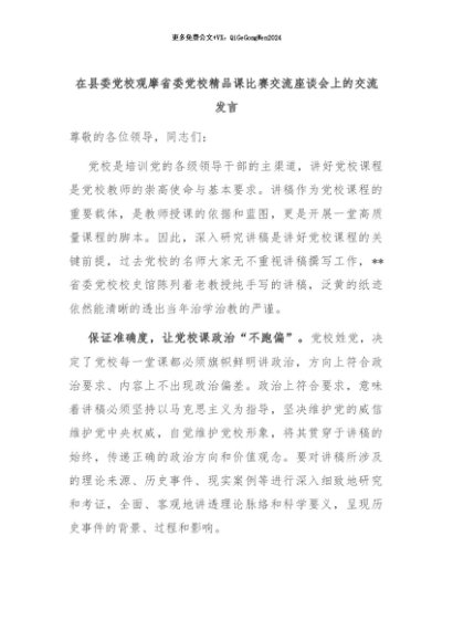 【七哥公文】2024年:在县委党校观摩省委党校精品课比赛交流座谈会上的交流发言+更多免费公文+VX:QiGeGongWen2024