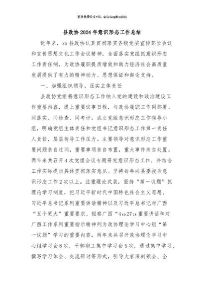 / 【七哥公文】2024年:县政协2024年意识形态工作总结+更多免费公文+VX:QiGeGongWen2024