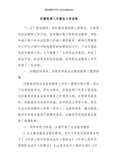 / 【七哥公文】2024年:区教育局八五普法工作总结+更多免费公文+VX:QiGeGongWen2024
