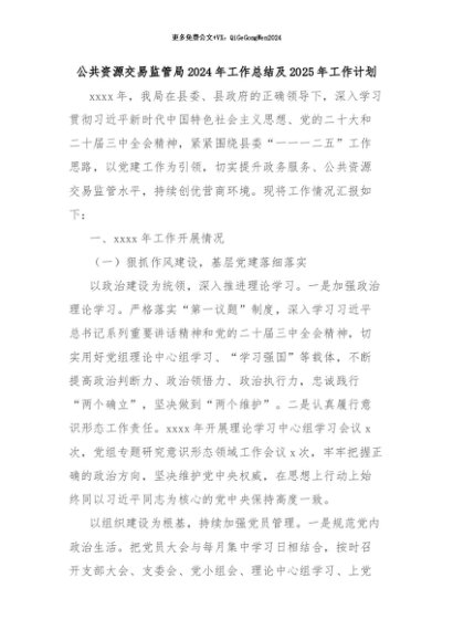 【七哥公文】2024年:公共资源交易监管局2024年工作总结及2025年工作计划+更多免费公文+VX:QiGeGongWen2024