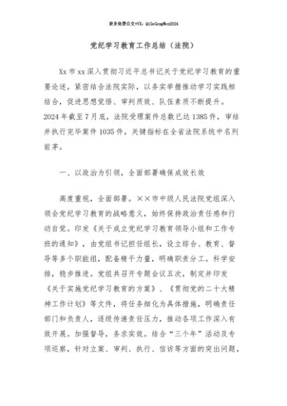 / 【七哥公文】2024年:党纪学习教育工作总结(法院)+更多免费公文+VX:QiGeGongWen2024