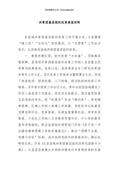 / 【七哥公文】2024年:共青团基层组织改革典型材料+更多免费公文+VX:QiGeGongWen2024