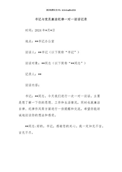 / 【七哥公文】2024年:书记与党员廉洁纪律一对一谈话记录+更多免费公文+VX:QiGeGongWen2024