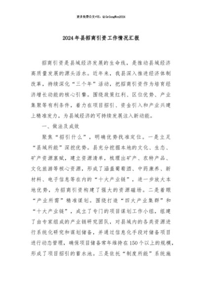 / 【七哥公文】2024年:2024年县招商引资工作情况汇报+更多免费公文+VX:QiGeGongWen2024