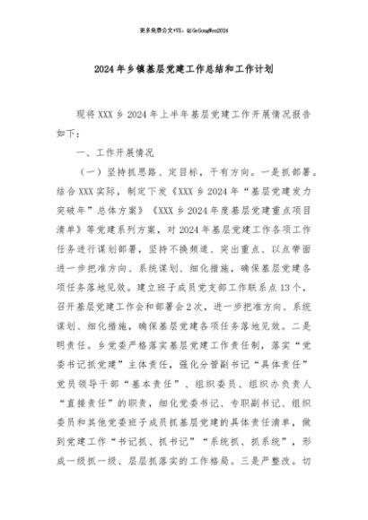/ 【七哥公文】2024年:2024年乡镇基层党建工作总结和工作计划+更多免费公文+VX:QiGeGongWen2024
