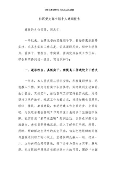 / 【七哥公文】2024年:社区党支部书记个人述职报告+更多免费公文+VX:QiGeGongWen2024