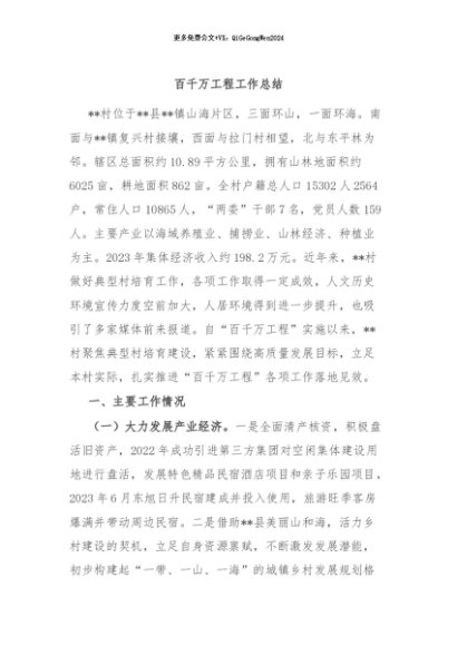 / 【七哥公文】2024年:百千万工程工作总结+更多免费公文+VX:QiGeGongWen2024