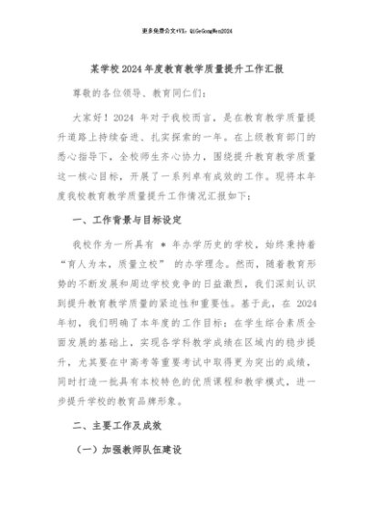 / 【七哥公文】2024年:某学校2024年度教育教学质量提升工作汇报+更多免费公文+VX:QiGeGongWen2024