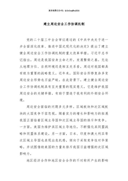 【七哥公文】2024年:建立周边安全工作协调机制+更多免费公文+VX:QiGeGongWen2024