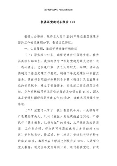 / 【七哥公文】2024年:抓基层党建述职报告(2)+更多免费公文+VX:QiGeGongWen2024