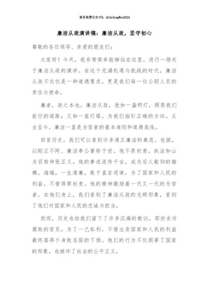 / 【七哥公文】2024年:廉洁从政演讲稿:廉洁从政,坚守初心+更多免费公文+VX:QiGeGongWen2024