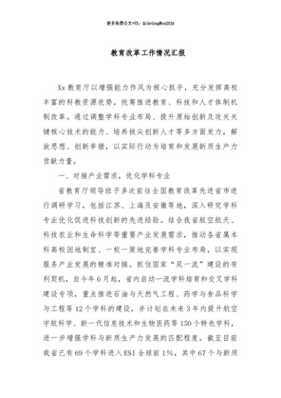【七哥公文】2024年:教育改革工作情况汇报+更多免费公文+VX:QiGeGongWen2024