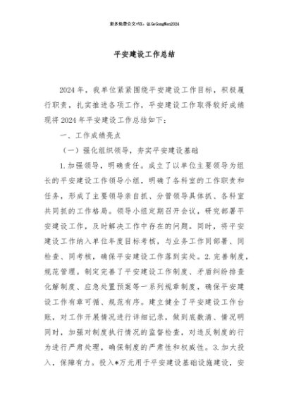 / 【七哥公文】2024年:平安建设工作总结+更多免费公文+VX:QiGeGongWen2024