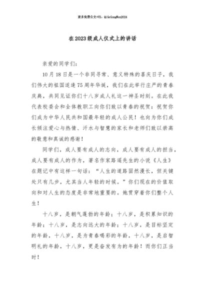 【七哥公文】2024年:在2023级成人仪式上的讲话+更多免费公文+VX:QiGeGongWen2024