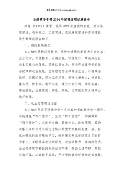 / 【七哥公文】2024年:县级领导干部2024年述德述职述廉报告+更多免费公文+VX:QiGeGongWen2024