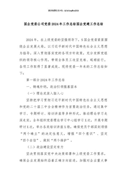 【七哥公文】2024年:国企党委公司党委2024年工作总结国企党建工作总结 (1)+更多免费公文+VX:QiGeGongWen2024