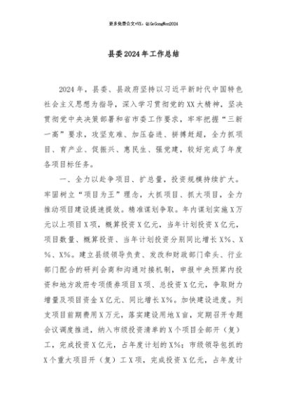 / 【七哥公文】2024年:县委2024年工作总结+更多免费公文+VX:QiGeGongWen2024