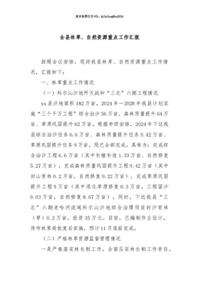 / 【七哥公文】2024年:全县林草、自然资源重点工作汇报+更多免费公文+VX:QiGeGongWen2024