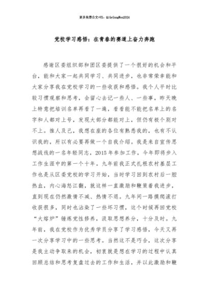 / 【七哥公文】2024年:党校学习感悟:在青春的赛道上奋力奔跑+更多免费公文+VX:QiGeGongWen2024