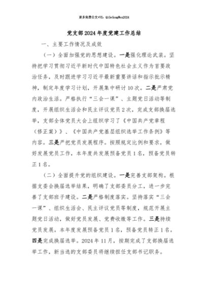 / 【七哥公文】2024年:党支部2024年度党建工作总结+更多免费公文+VX:QiGeGongWen2024