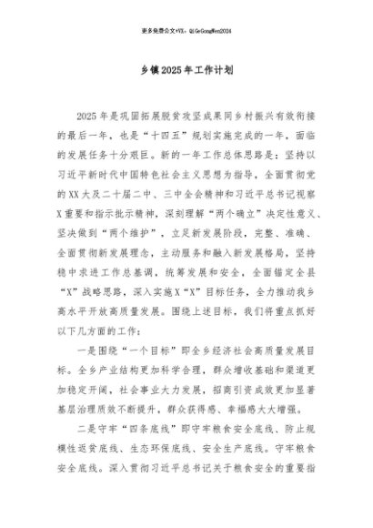 / 【七哥公文】2024年:乡镇2025年工作计划+更多免费公文+VX:QiGeGongWen2024
