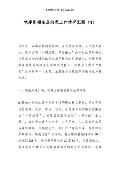 / 【七哥公文】2024年:党建引领基层治理工作情况汇报(4)+更多免费公文+VX:QiGeGongWen2024