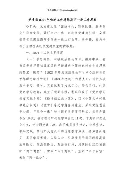 / 【七哥公文】2024年:党支部2024年党建工作总结及下一步工作思路+更多免费公文+VX:QiGeGongWen2024